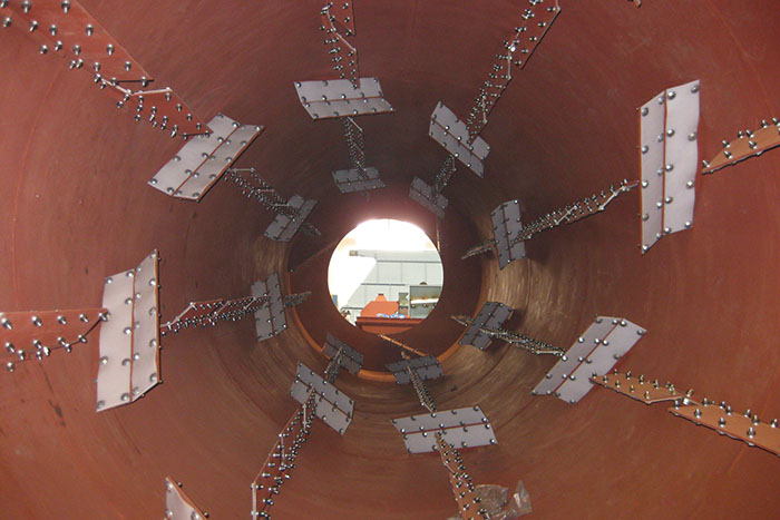 3.采用链传动减少滚筒径向跳动带来的影响;改性工程浇注尼龙托辊的运用,大大降低了辊道的磨损。